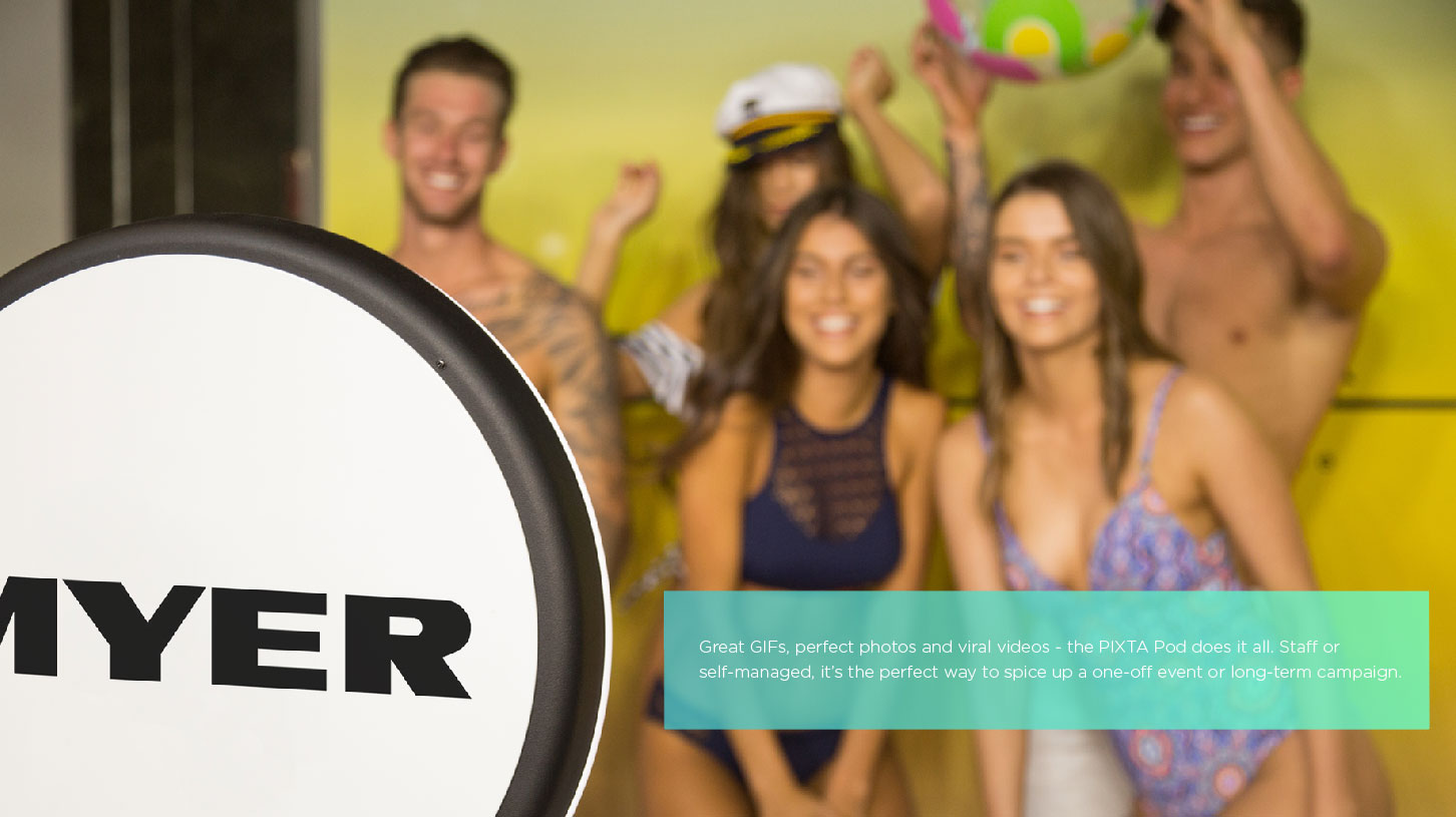 Great GIFs, perfect pictures and viral videos. PIXTA Pod is a stand-alone selfie-station, capable of capturing, branding and sharing content instantly to users’ social media. Perfect to spice up existing events or long-term campaigns.